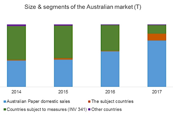 Australian Paper says it gained market share last year as a result of the measures imposed against imports from Brazil, China, Indonesia and Thailand (see chart below).