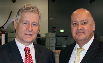 Pictured: (l-r) Alastair Hadley, general manager sales and marketing for HAN with Dr David Cooke, executive general manager direct operations and marketing, Konica Minolta Business Solutions Australia.