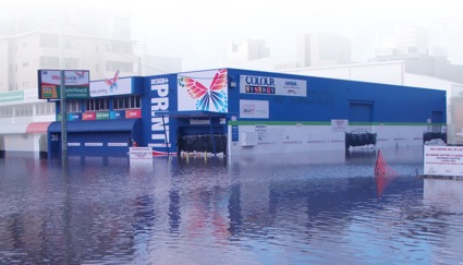 Natasha Anich, business development manager for the South Brisbane franchise says it moved all of its machinery out a day before the floods hit, “we were fortunate to do that with the help of Konica Minolta and Océ. It was all hands on deck with suppliers and curriers to get everything out in the nick of time.”