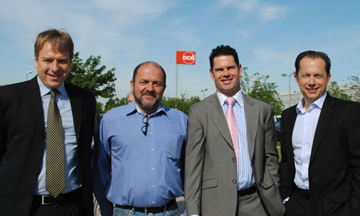 Photo caption: Summer in Bavaria… Bruce Peddlesden, (2nd from left) with Simon Wheeler, Tim Saleeba and Herbert Kieleithner of Océ.
