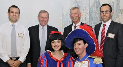 Pictured: (L-R) Tim Scott, Dudley Scott, Mike Scott, John Scott, Snow White and Prince Charming.