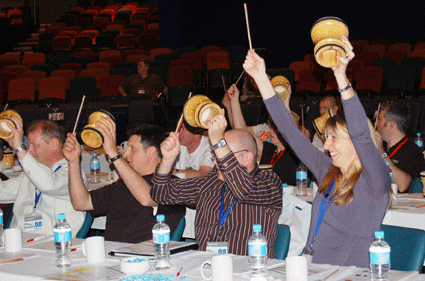 More! More! Crowds bang the bongo drums at Saturday's conference.