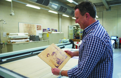 Pictured: David Gordon inspects a piece of art printed on a ceramic substrate on the Arizona 350GT.