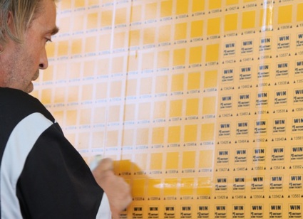 The campaign is likely to be a world-first promotion with a printer producing stick-on scratchy tickets for large-format outdoor use.