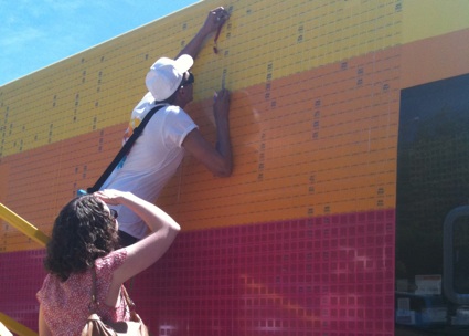 The remarkable vehicle covering consists of thousands of genuine lottery tickets able to be scratched off by a passersby. The innovative promotion drew crowds of eager scratchers as the bus toured the country.