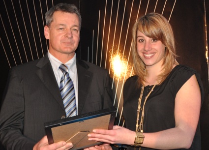 Pictured: Alan Fawcett from Watermarx Graphics receives his award from Kodak's Liana Ansell.