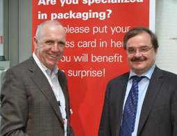 According to Crit Driessen, vice president, (pictured right with Patrick Howard, publishing editor Print21) the press will make its market debut in the middle of 2013, with a pioneer site not too far from the factory already agreed. He revealed one of the key technologies is the composition of the nano toner particles, small enough to move rapidly within the oil carrier, whose composition is top secret. He also confirmed Océ has been working on the project for a long time.