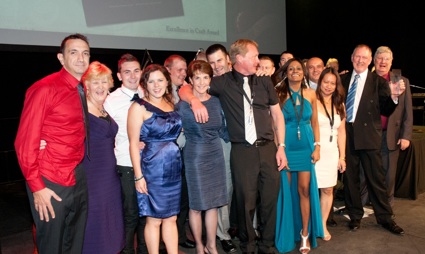 Two of the three winners in the excellence awards were from the same company, Hyde Park Press. The managing director brought all two tables worth of staff up on stage with party poppers to celebrate their win.