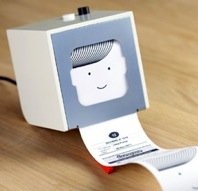 This mini inkless thermal printer is the size of an alarm clock, and comes complete with an internal wireless server. Smartphone subscriptions to news, puzzles, calendar reminders, and to-do lists bring multiple digital feeds into printed bookmarks or Post-its.