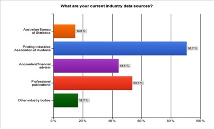 Over 90% of members indicated that the Printing Industries is their primary source of industry data, while only 14.8% cited ABS as a preferred source. Interestingly, PIAA members ranked professional publications, such as Print21, higher than financial advisers as a data resource, See graph below: