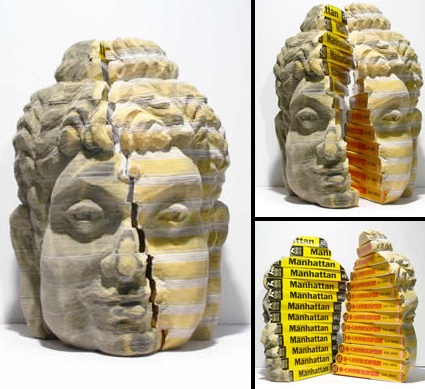 According to culture blog, Holy Kaw! artist Long-Bin Chen transforms telephone books into works of art, giving new life to the outdated telephone directories.