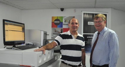 Pictured: Docmaster’s Gordon Lang (l) showcased the company’s new Lanier C901 colour printer with John Hall, MD of Lanier.