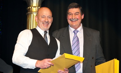 Pictured: Craig Pearce, Flying Colours accepting six gold awards with Danny Roach, PICA Tasmania Chairman