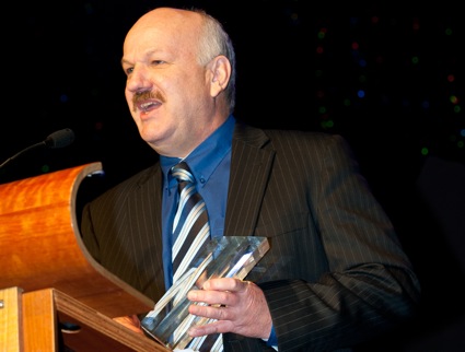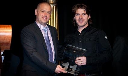 Pictured: Leigh Carmichael Design accepts the 2011 Paperlinx Platinum PICA for outstanding overall entry in design.